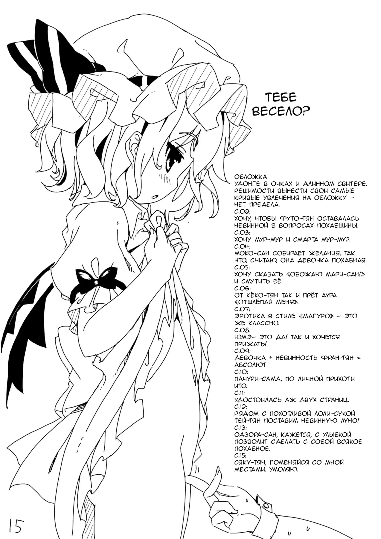 ito lifeСборник скетчей Itou Life по мотивам Touhou Project. Touhou Project - серия японских bullet hell-шутеров от ZUN про мир Гэнсокё, где девушки-ёкаи решают аномальные инциденты, уклоняясь от сложных узоров пуль под культовую музыку